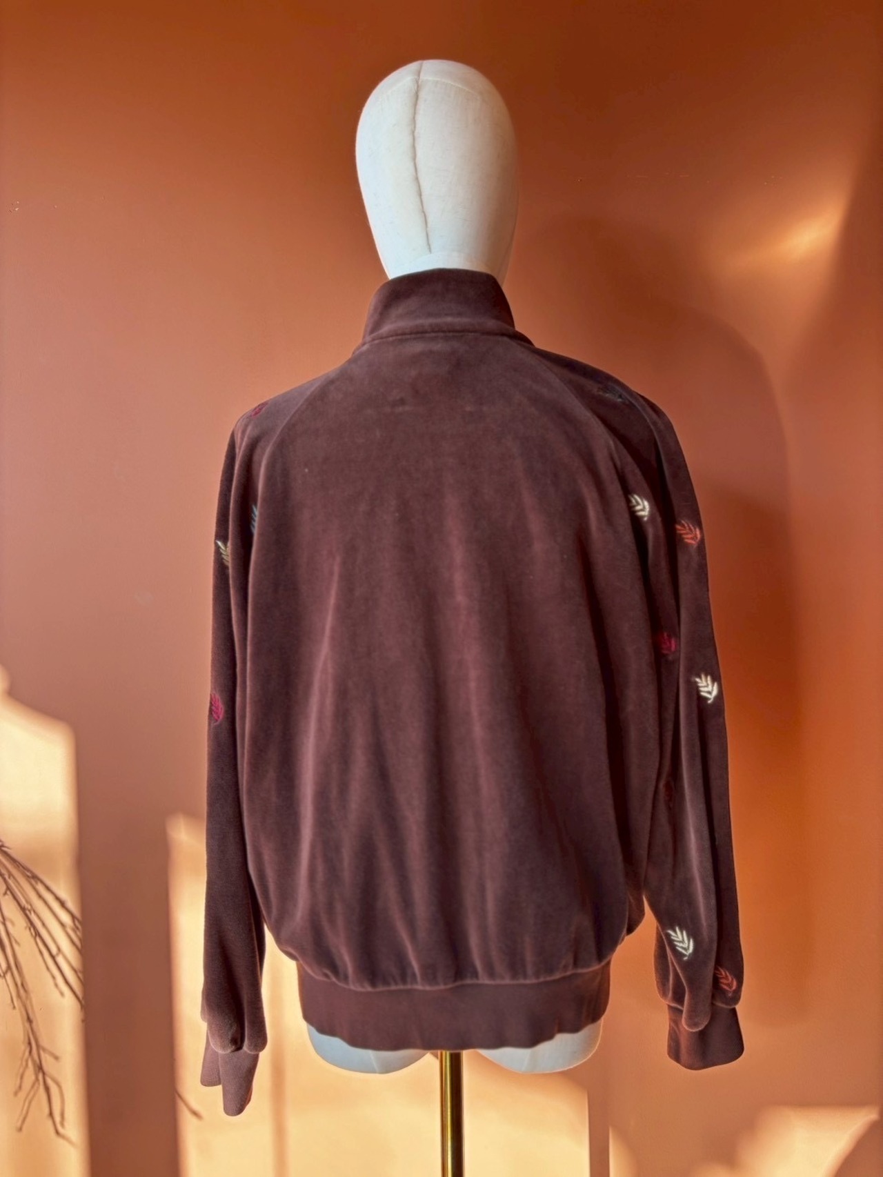 カラフルなリーフ刺繍入りのベロアトラックジャケット