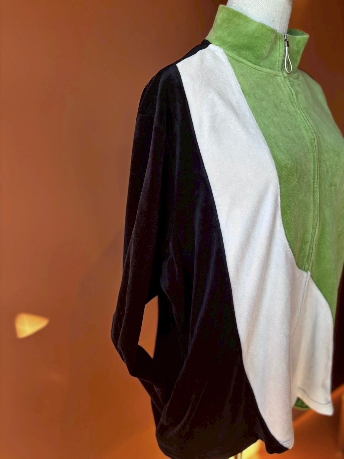 カラーブロックが印象的なベロア素材のトラックジャケット