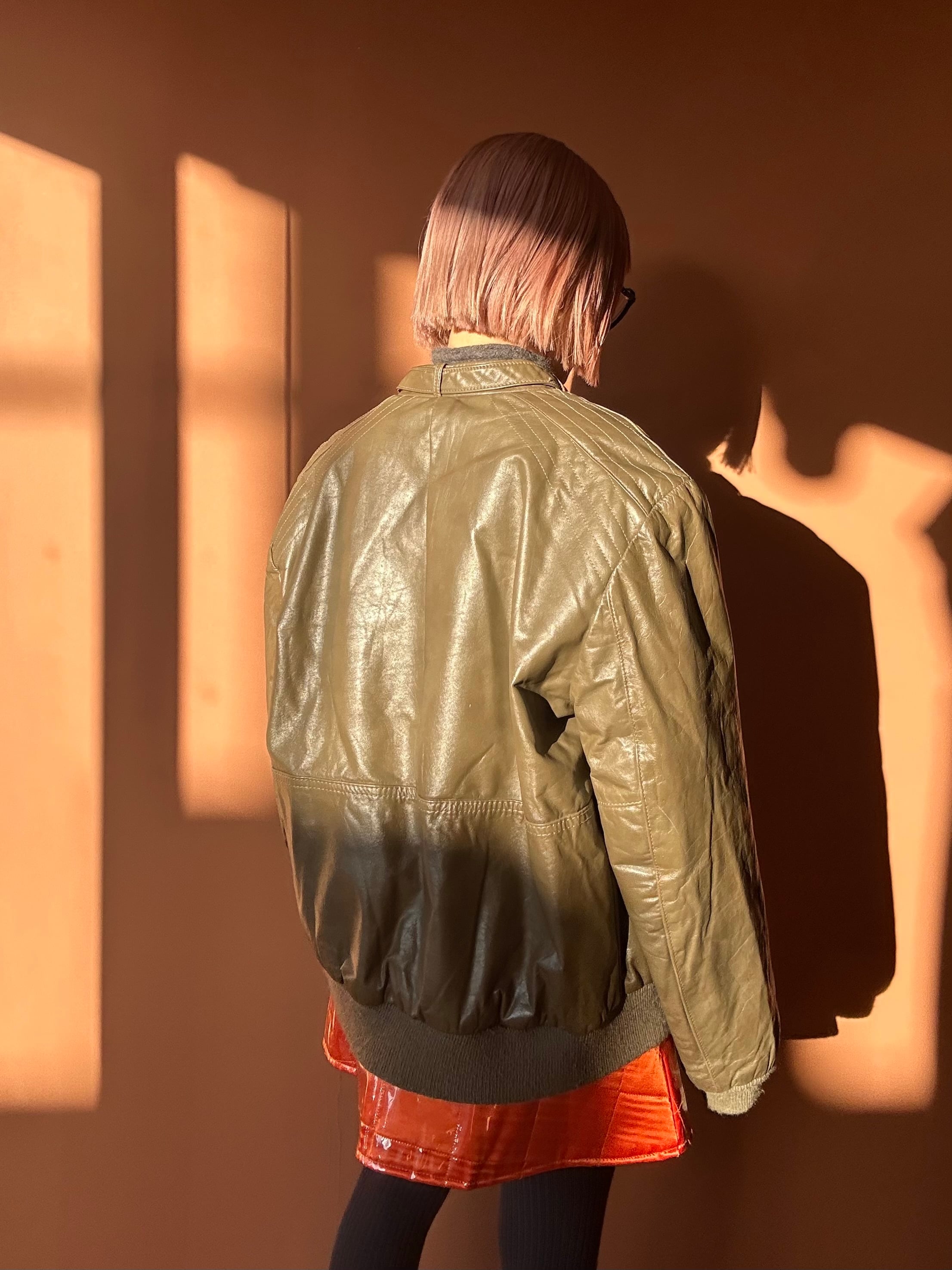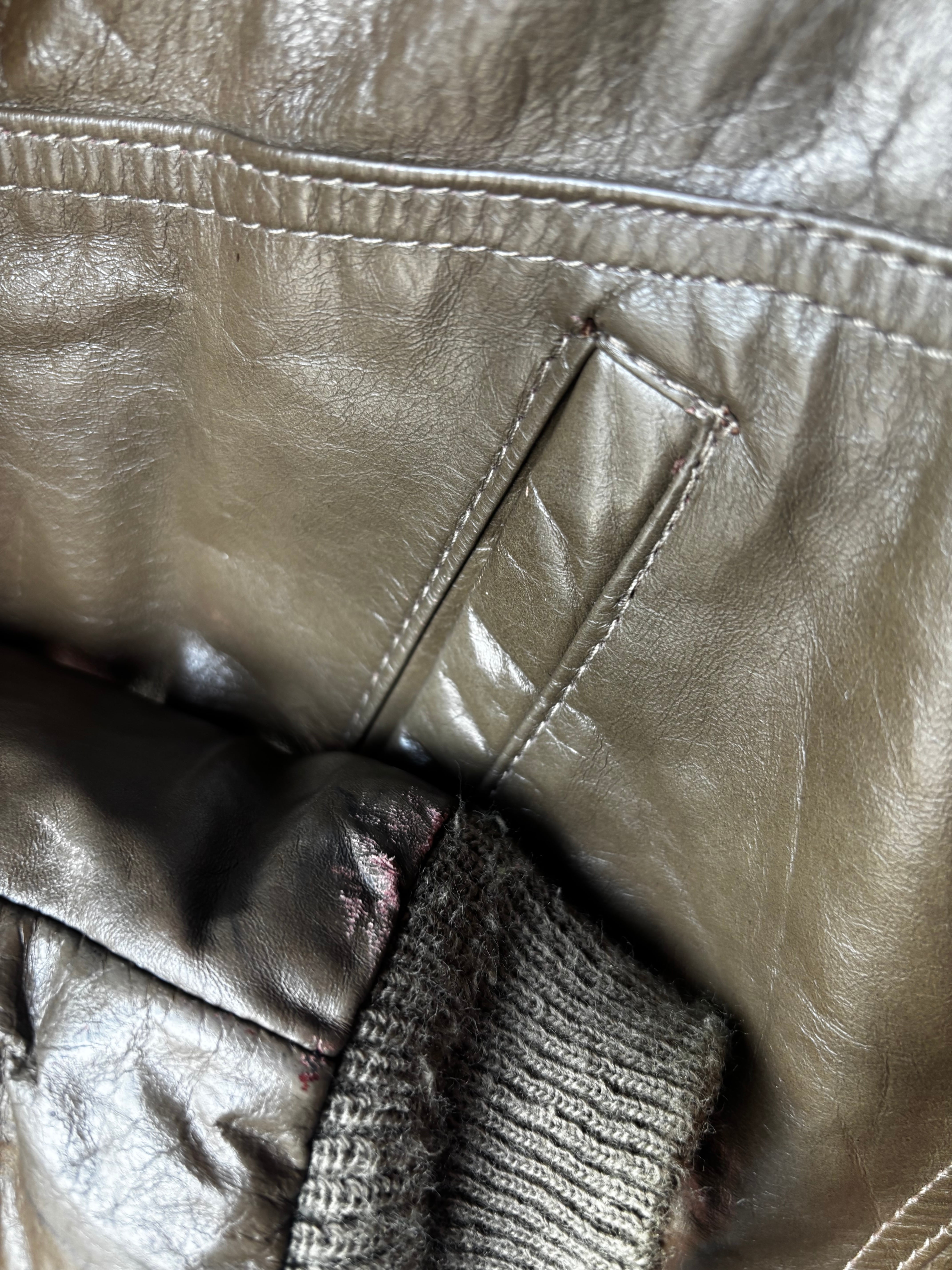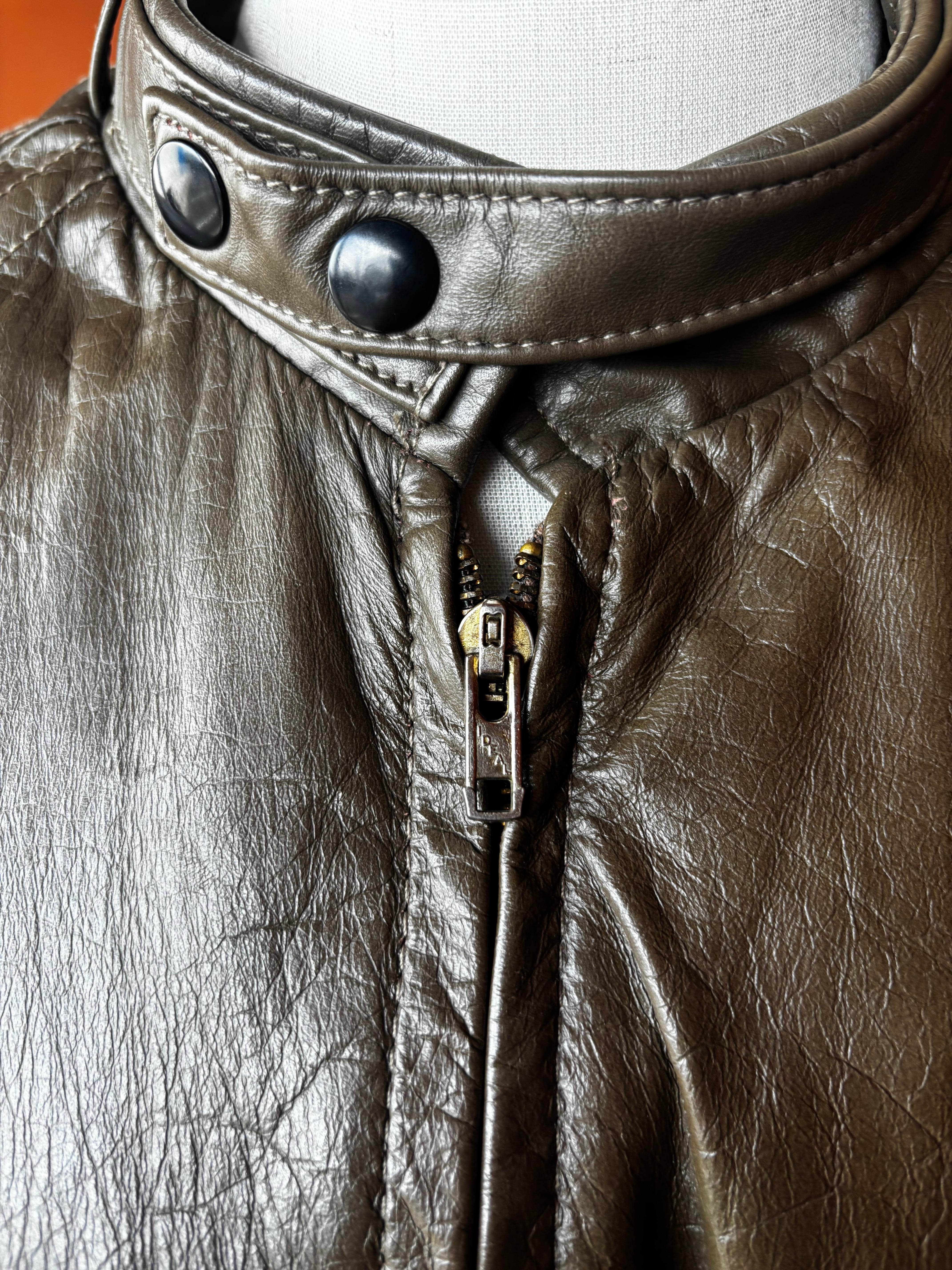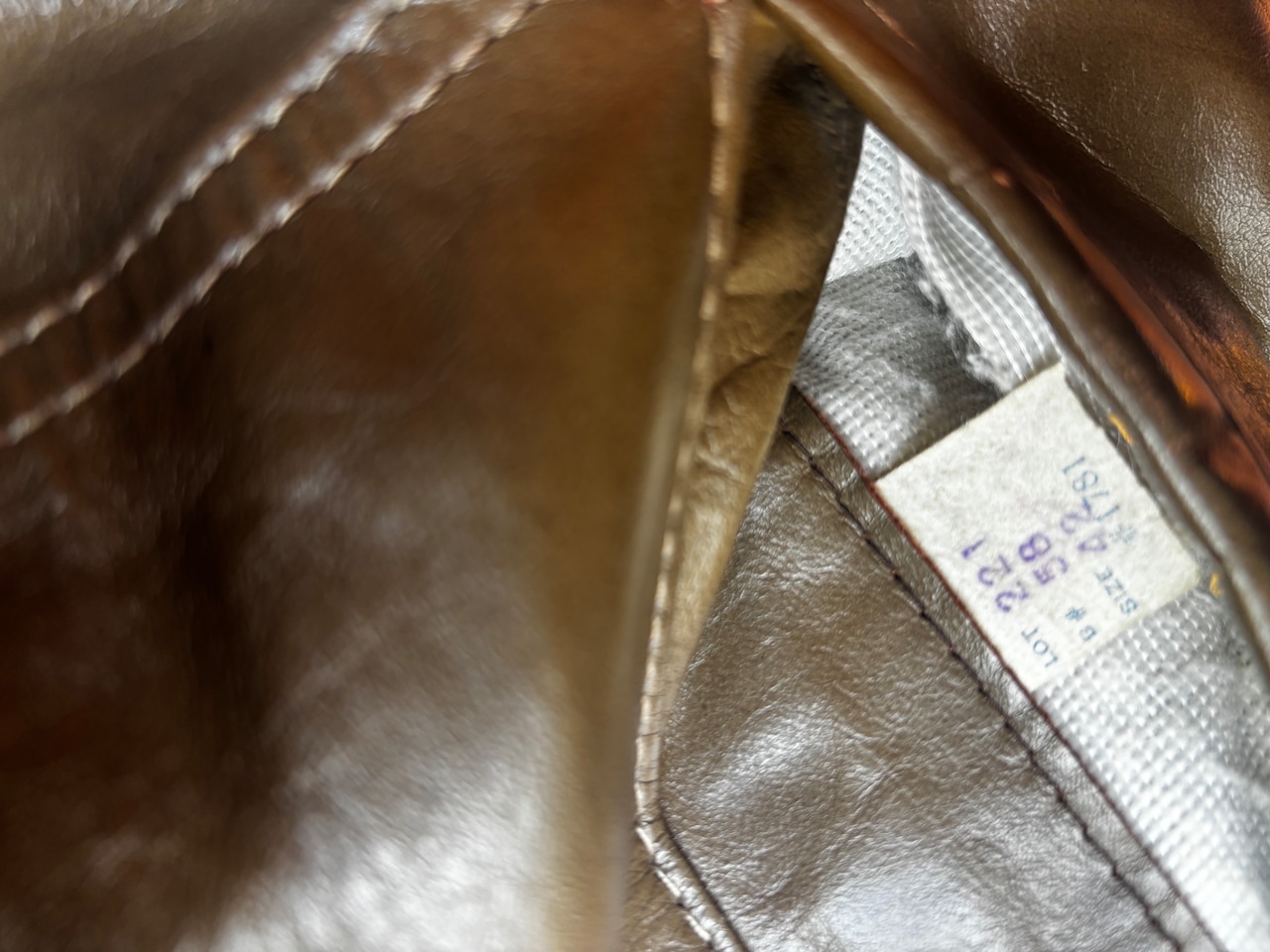 全体的にレザー特有の経年変化があり、右肩に約1.5cmのダメージが見られます。