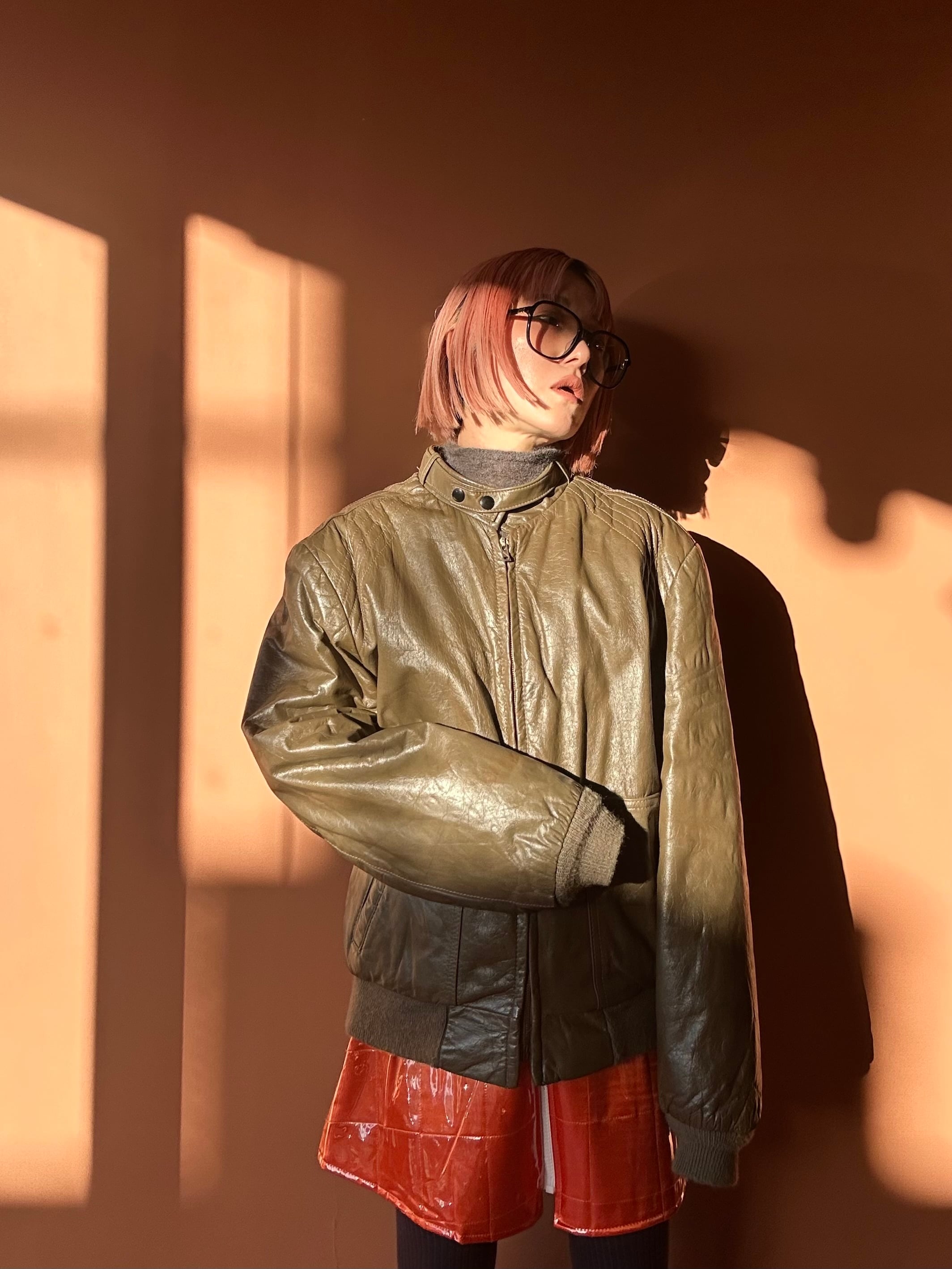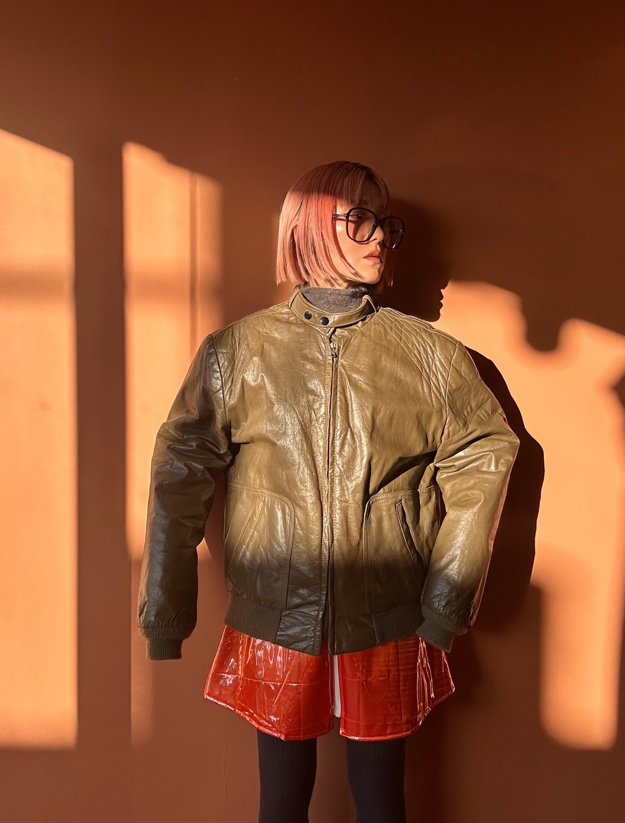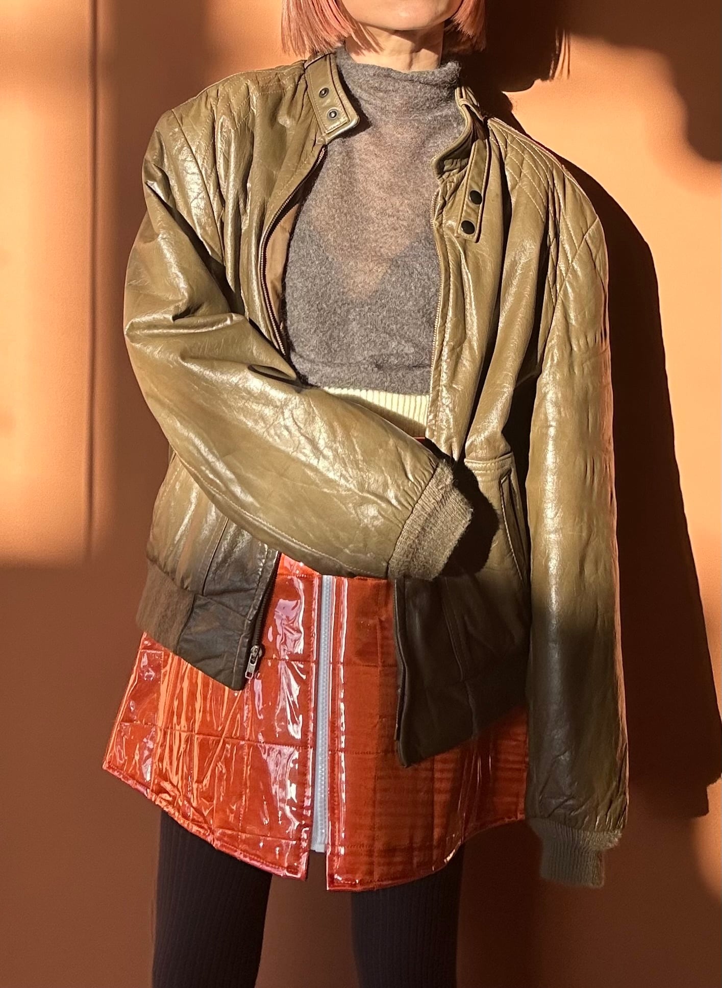 全体的にレザー特有の経年変化があり、右肩に約1.5cmのダメージが見られます。