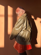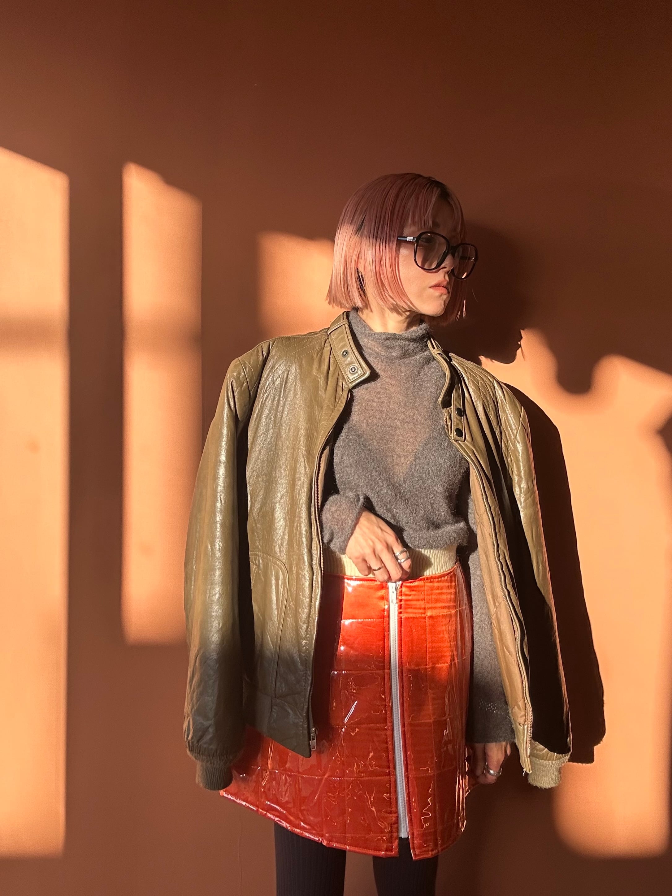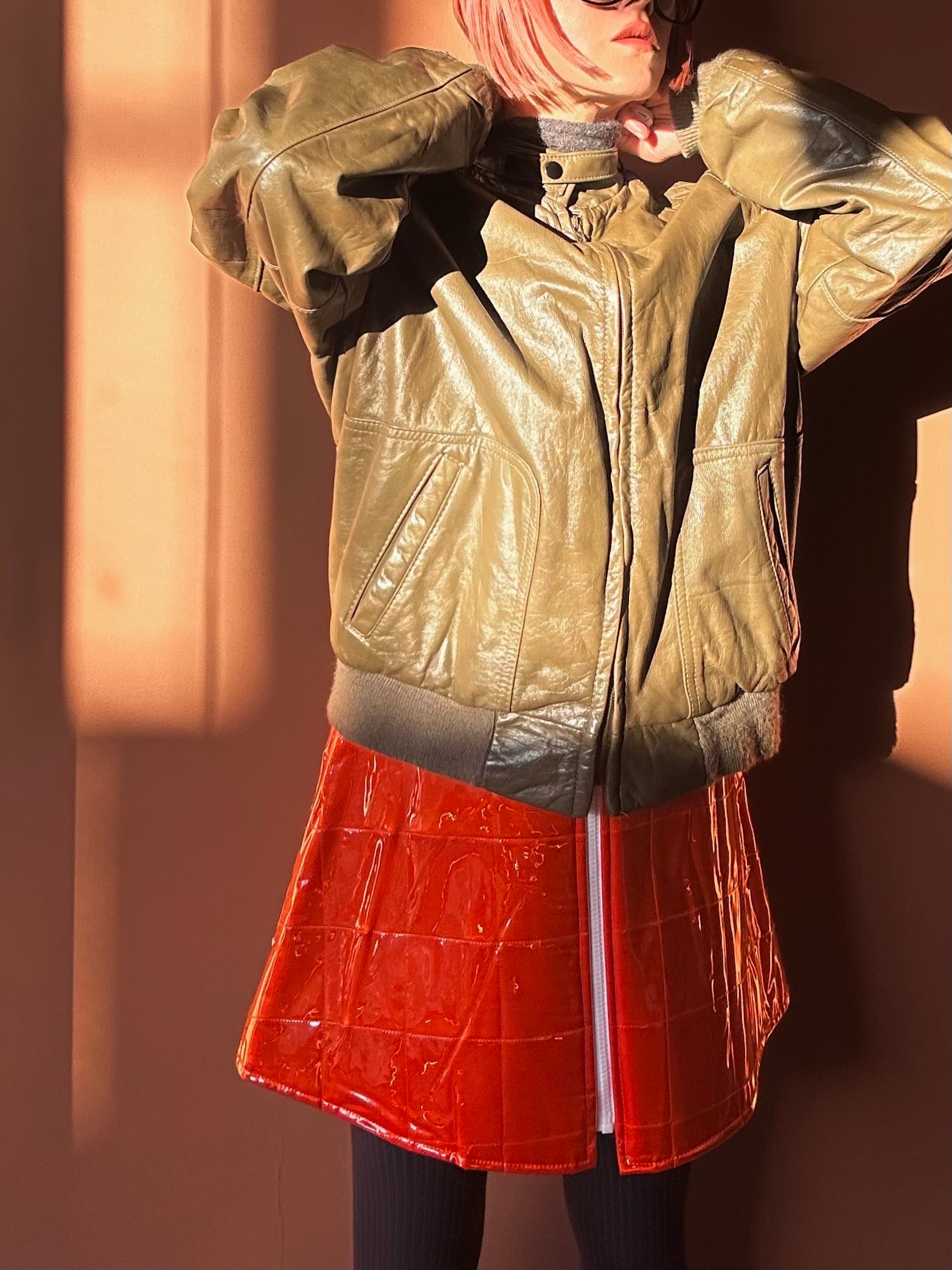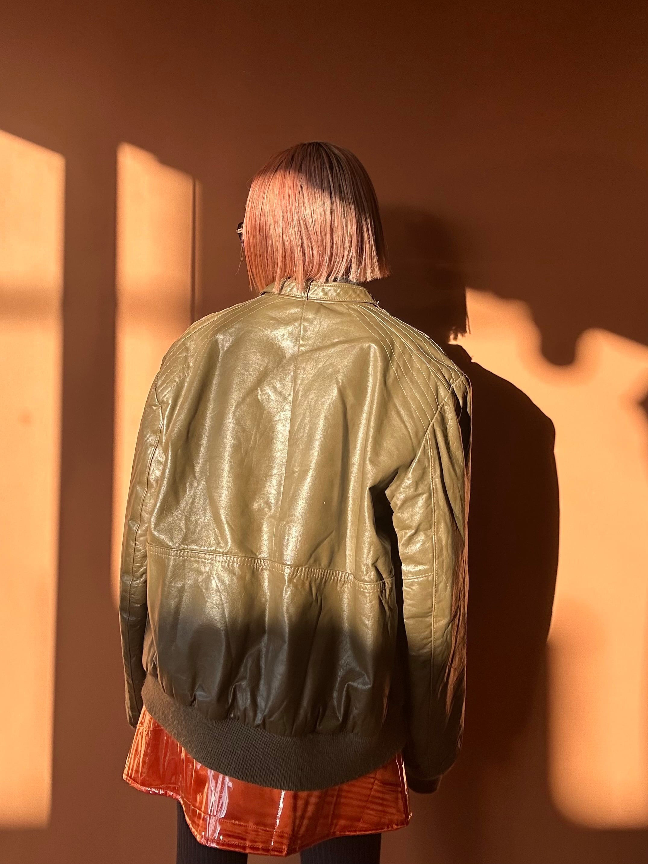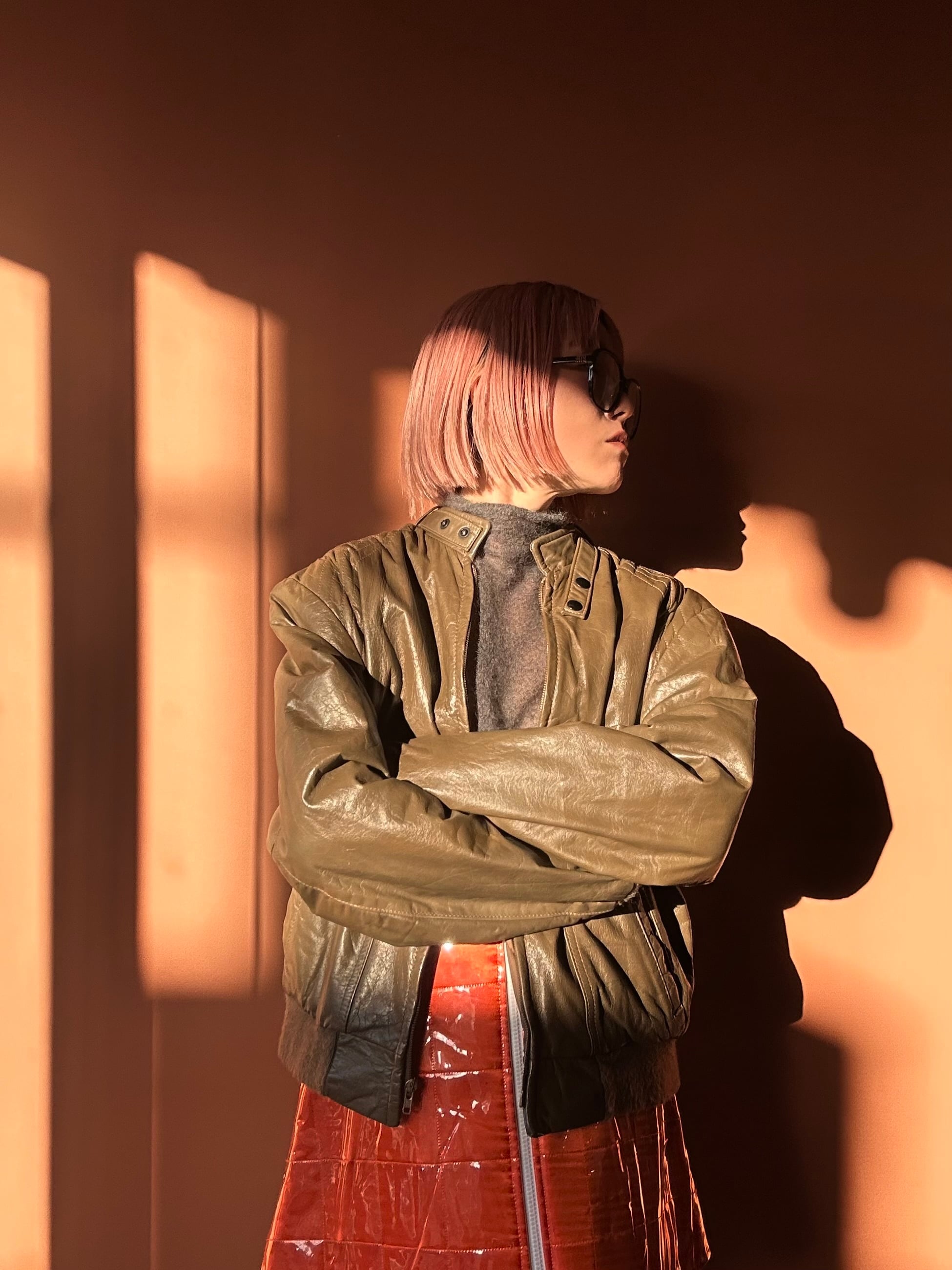 全体的にレザー特有の経年変化があり、右肩に約1.5cmのダメージが見られます。