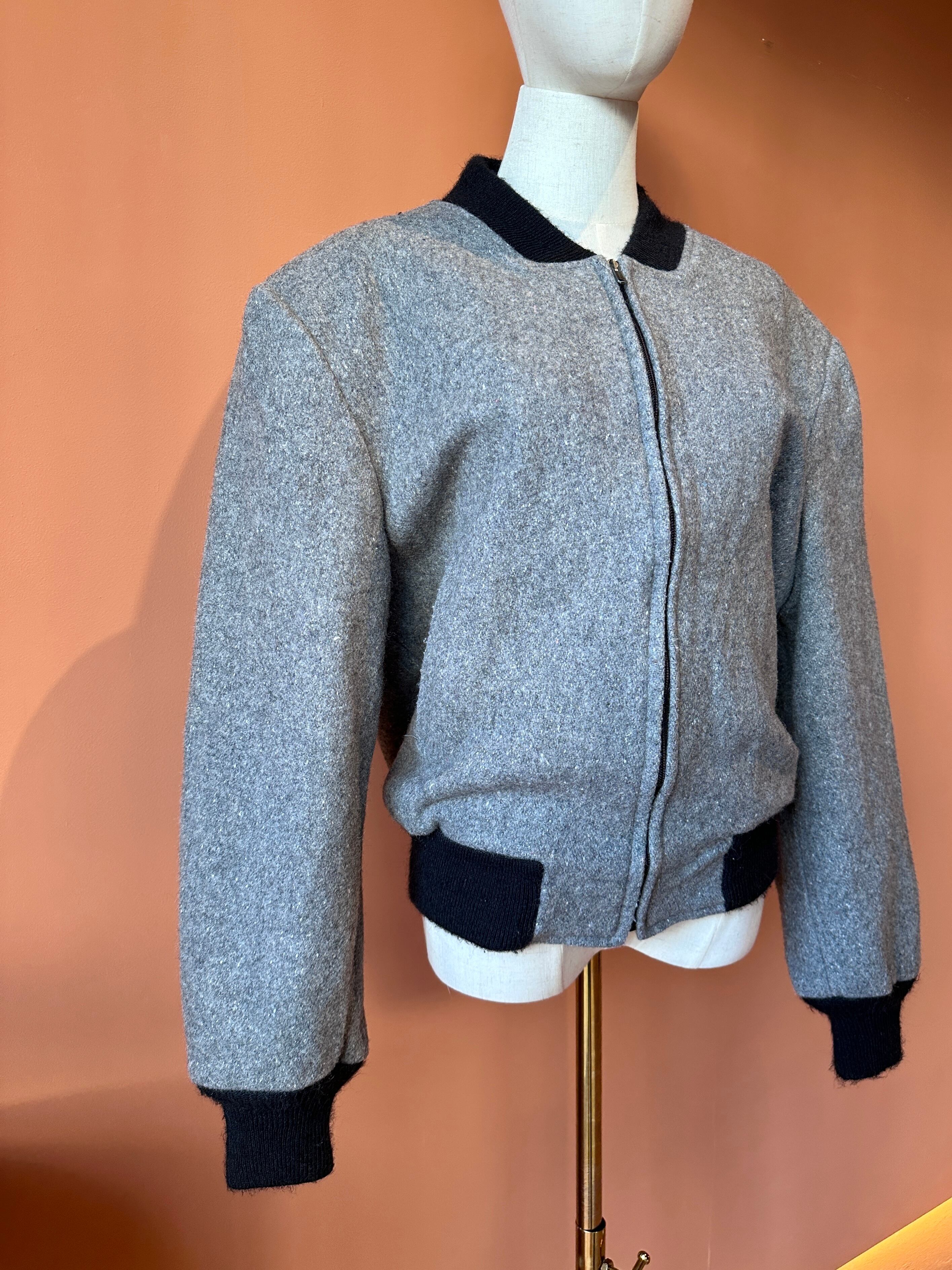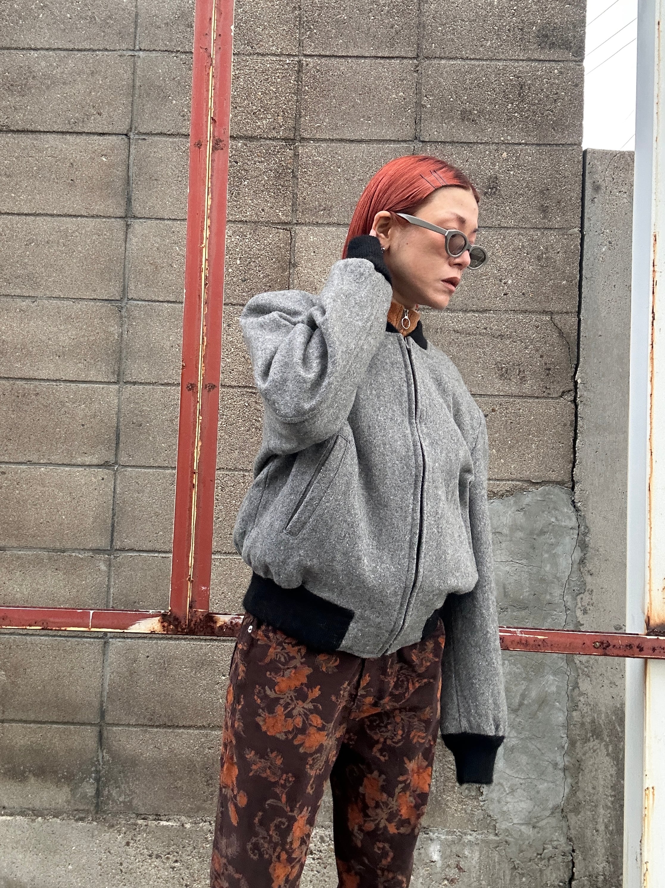 厚手のショルダーバッドをしっかりと感じるシルエット