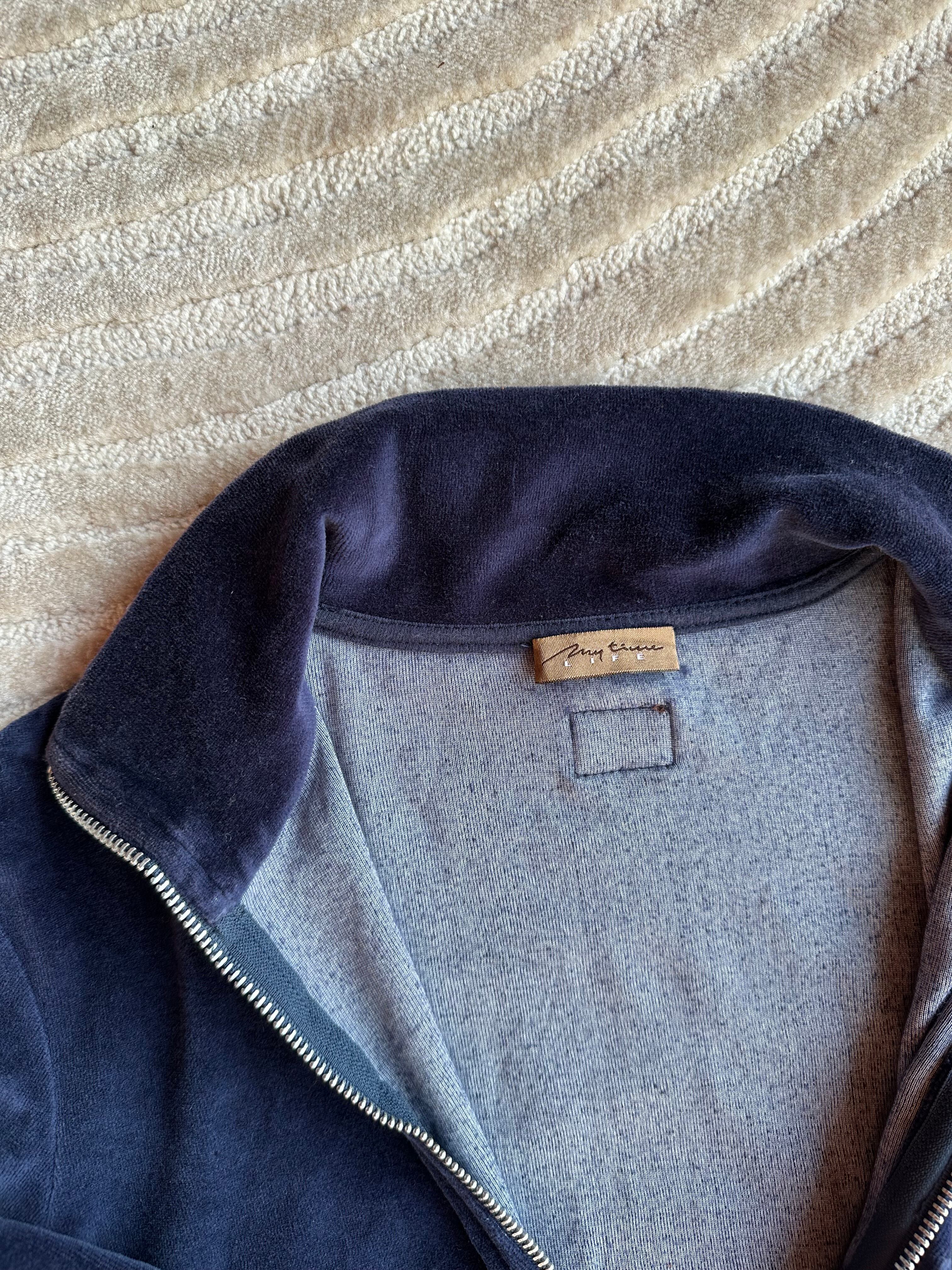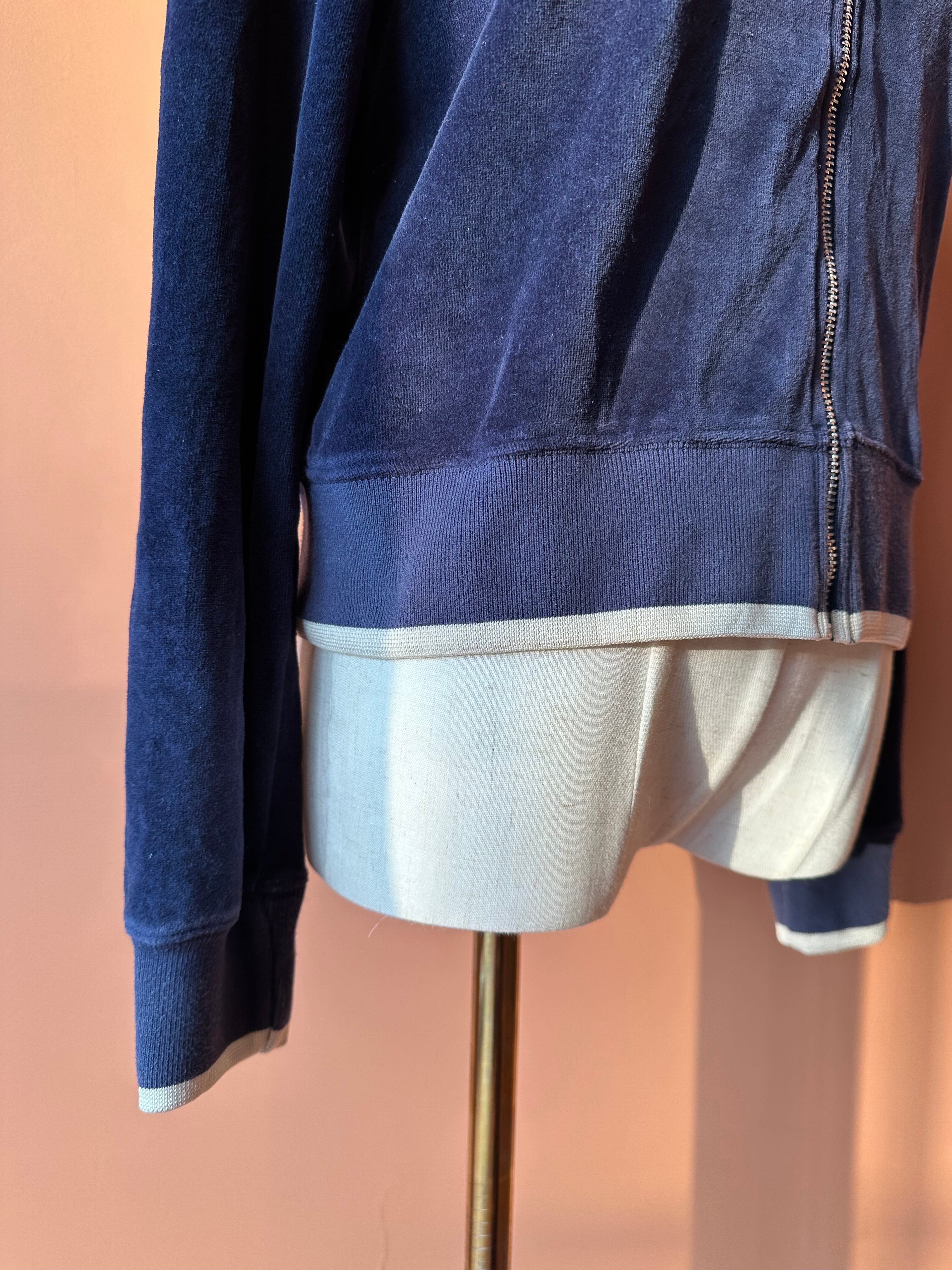 Velour Zip Track Top -Navy