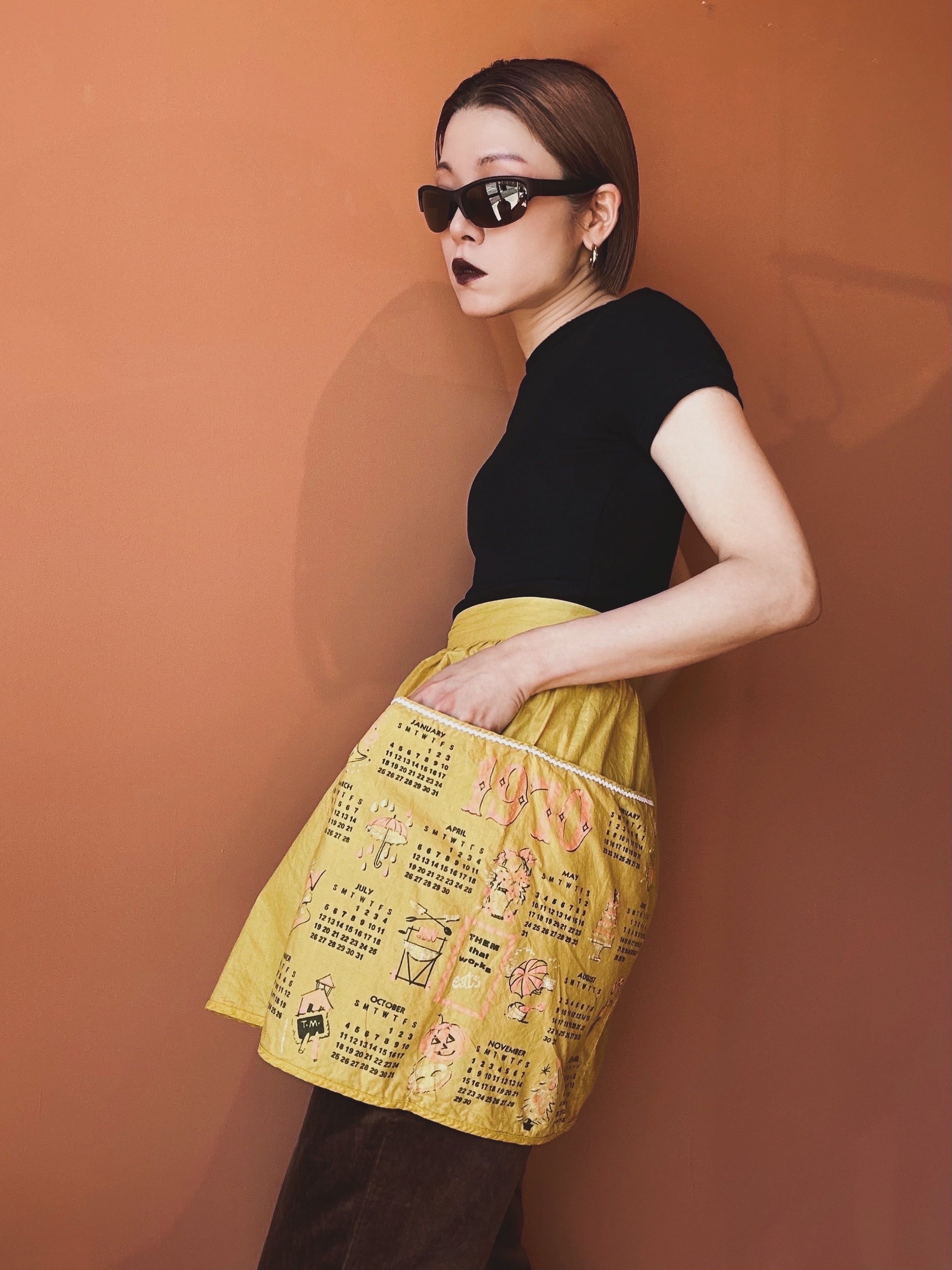 1970年の年間カレンダーがプリントされた希少なヴィンテージラップエプロン。