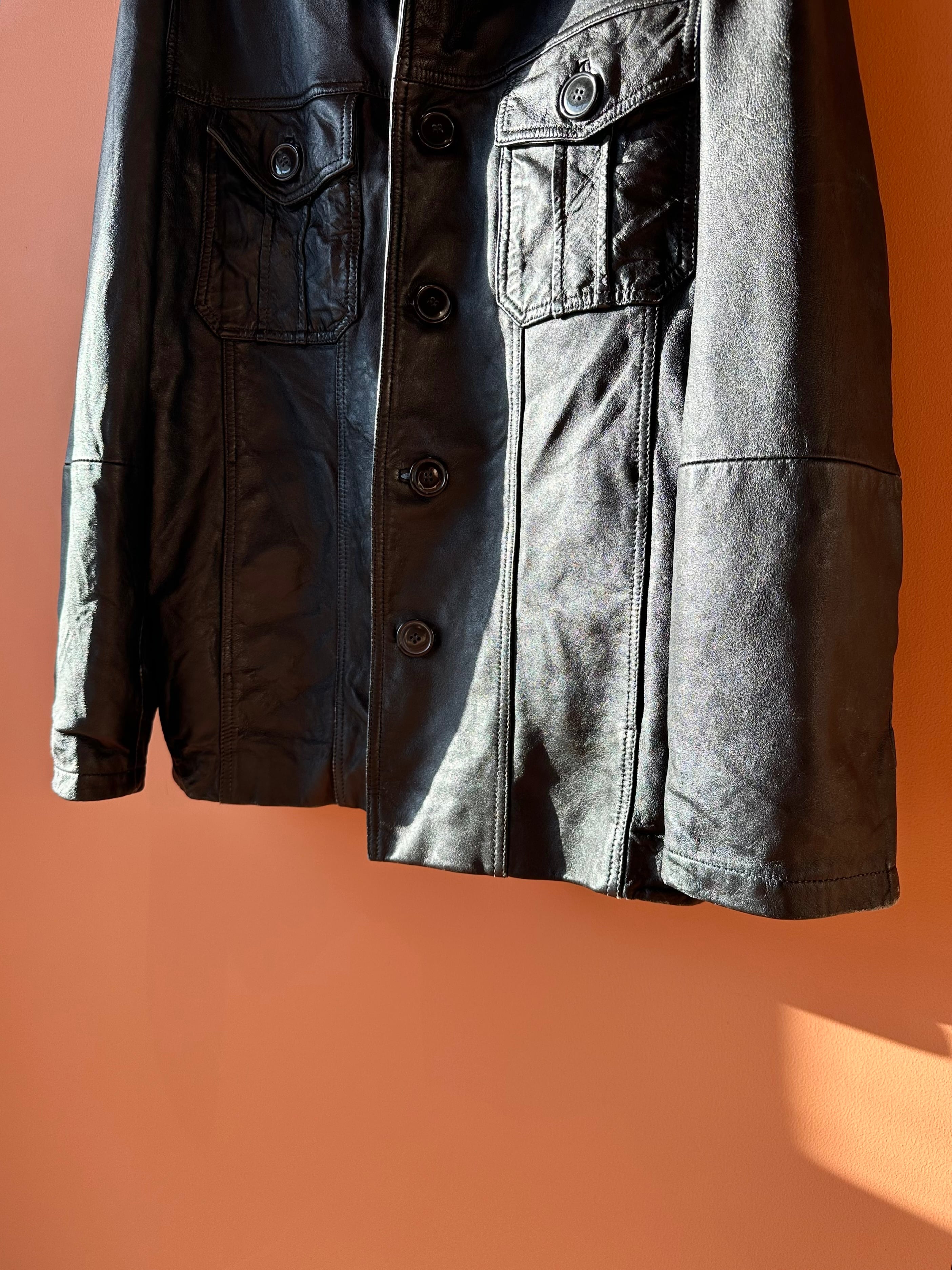 比較的重量感の少ないレザーが使用されていて、デイリーにも取り入れやすい一着です。